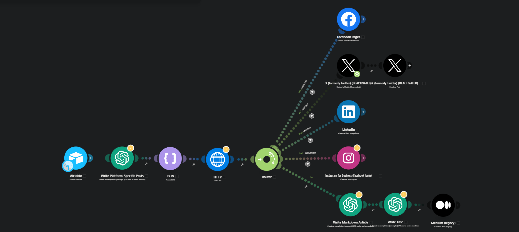 An automation that takes a single piece of content and instantly adapts, formats, and distributes it across multiple platforms (Facebook, LinkedIn, Instagram, Twitter/X, and Medium). This ensures maximum reach and consistent branding without manually posting.